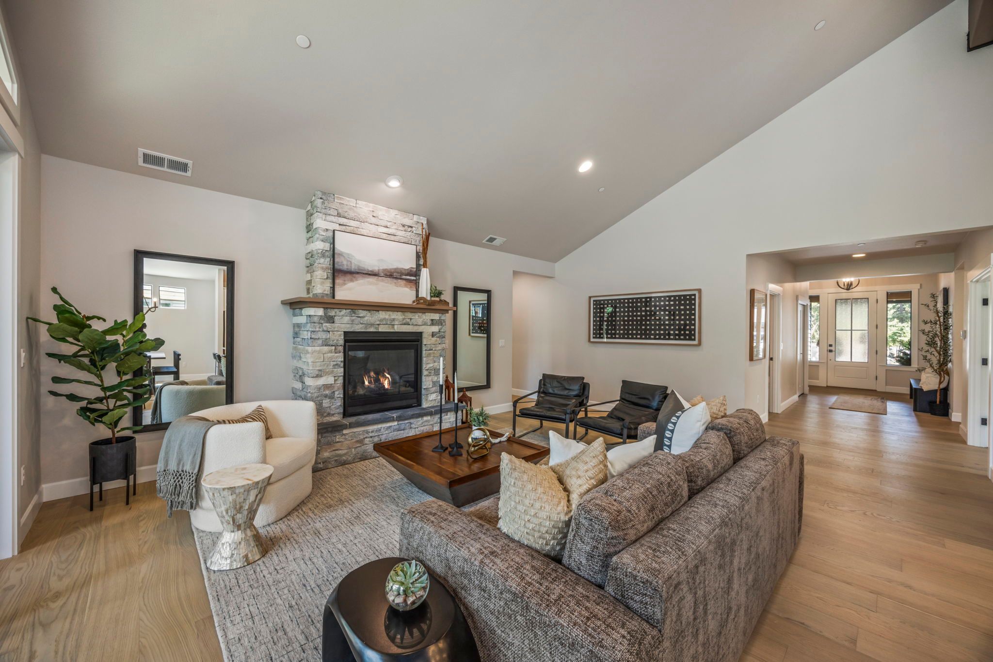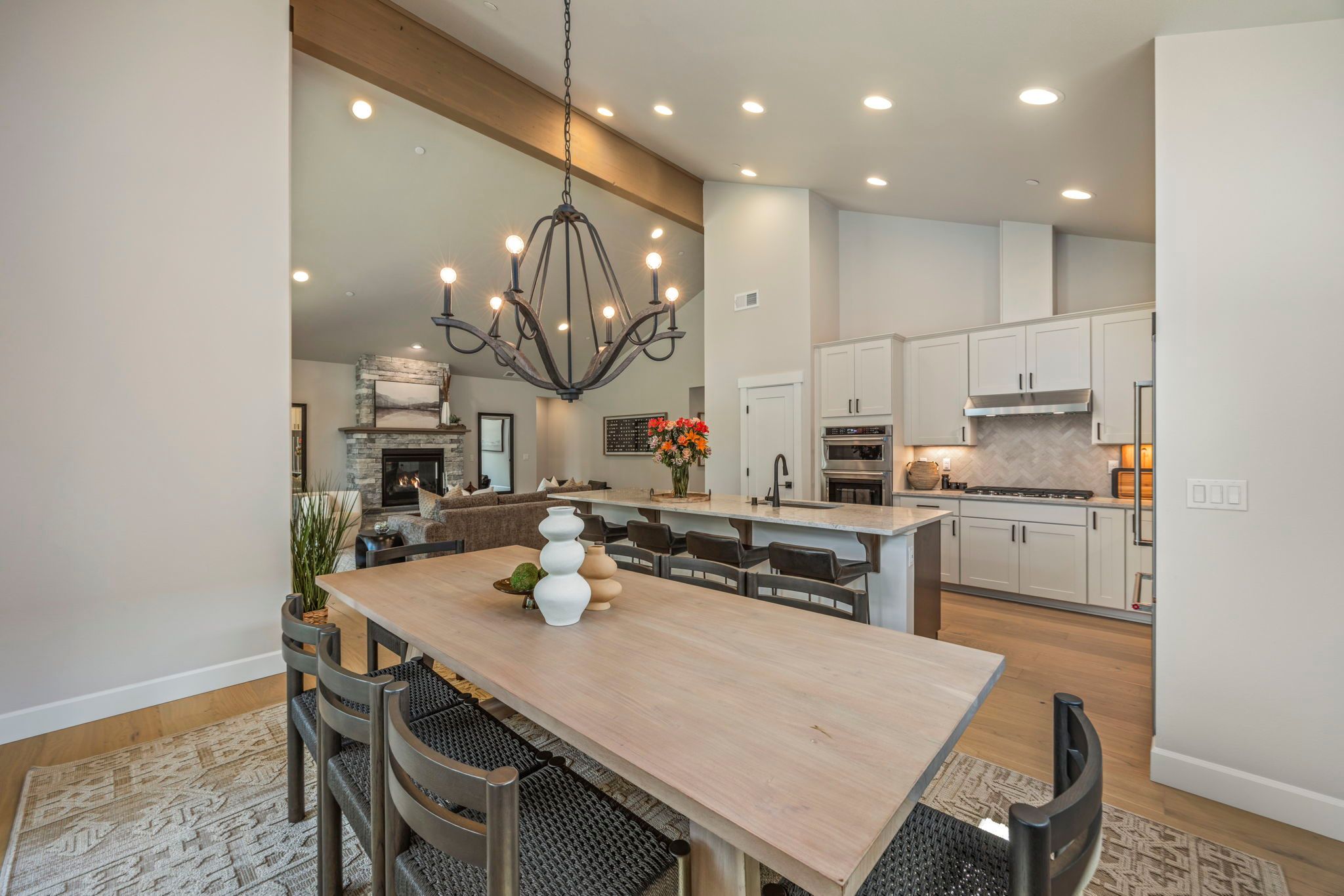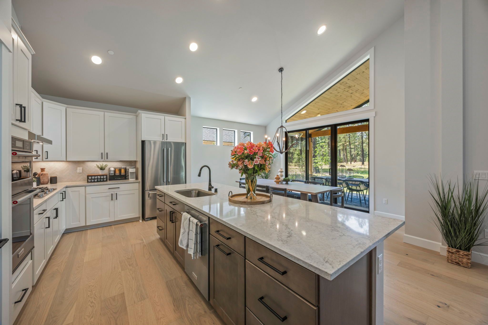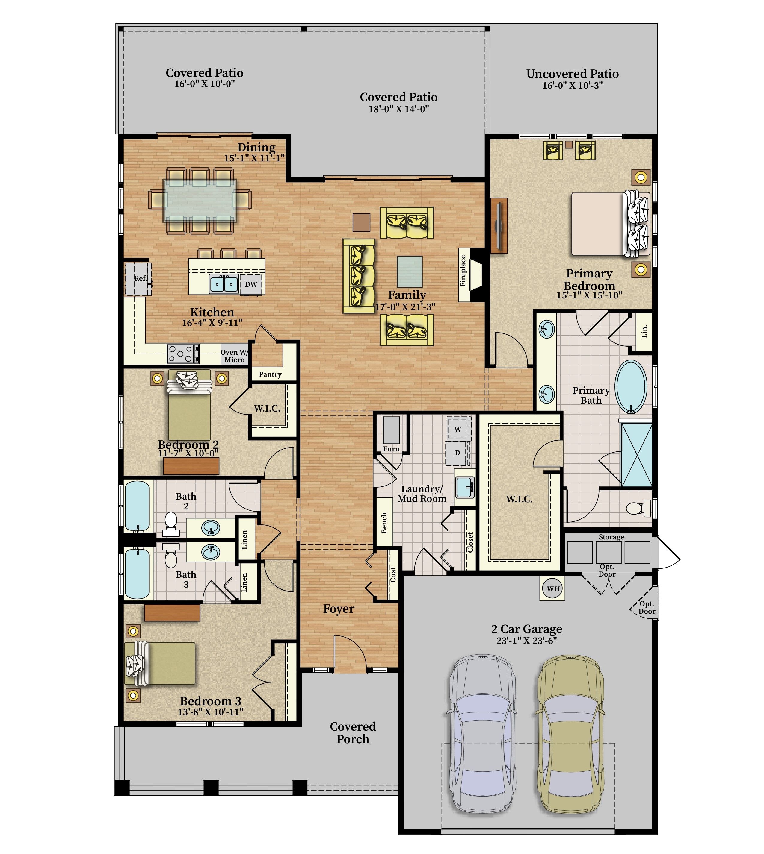Our cozy single level Maxwelton floor plan has 2,267 sq ft that includes the Primary ensuite, 2nd bedroom w/optional study, guest bath, and additional ensuite bedroom. The open concept kitchen, dining room, & living room are vaulted, leading out to a large, covered patio with a gas firepit. This home is perfect for entertaining or just relaxing.