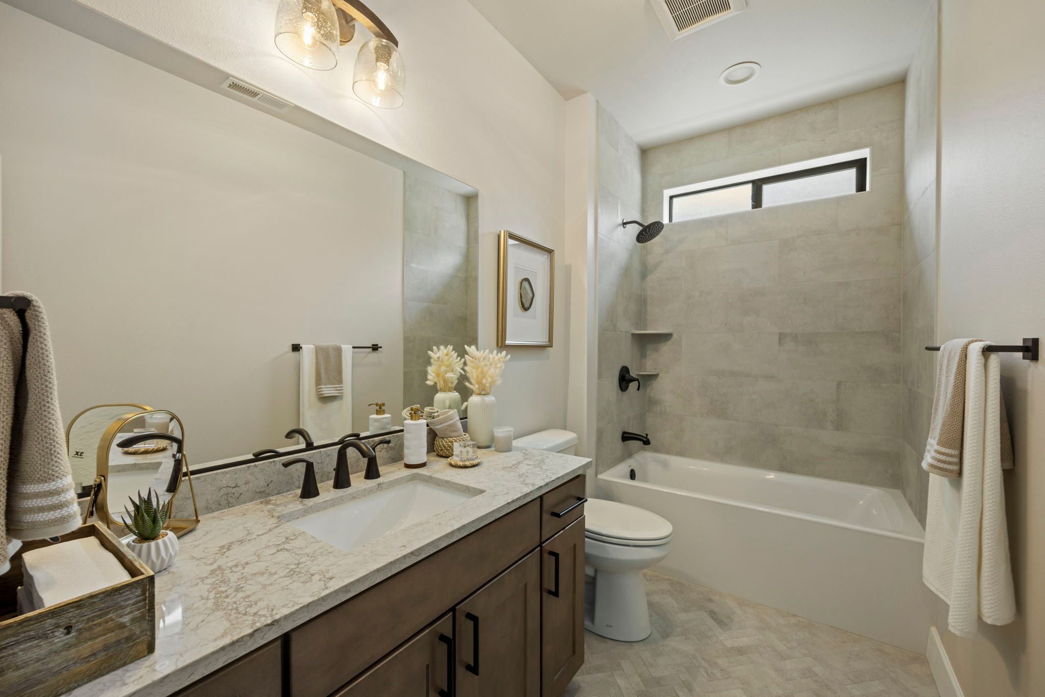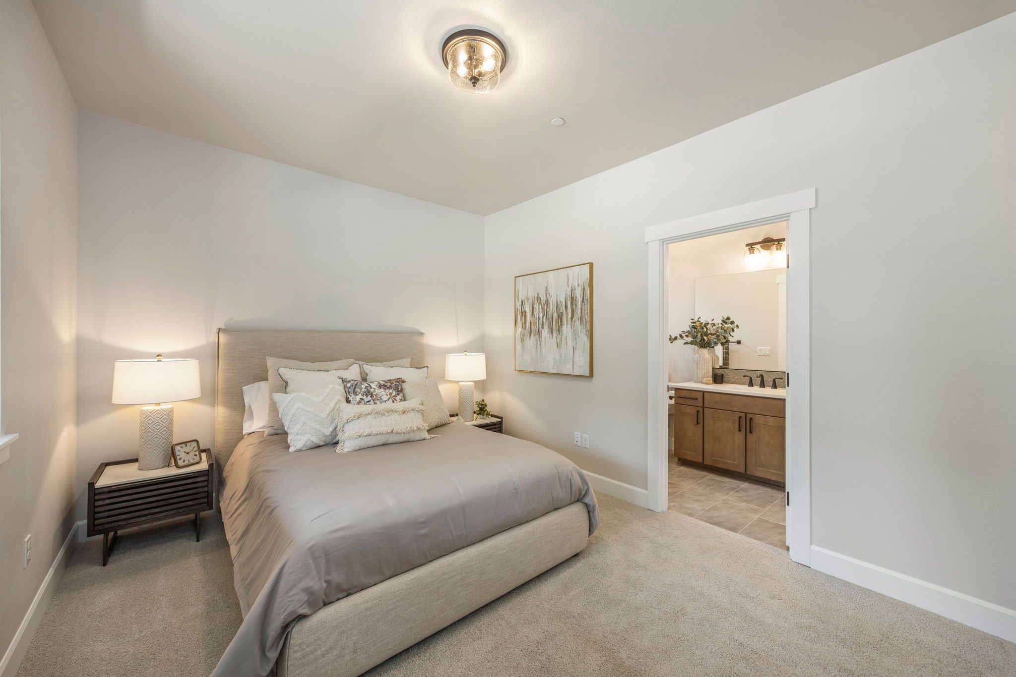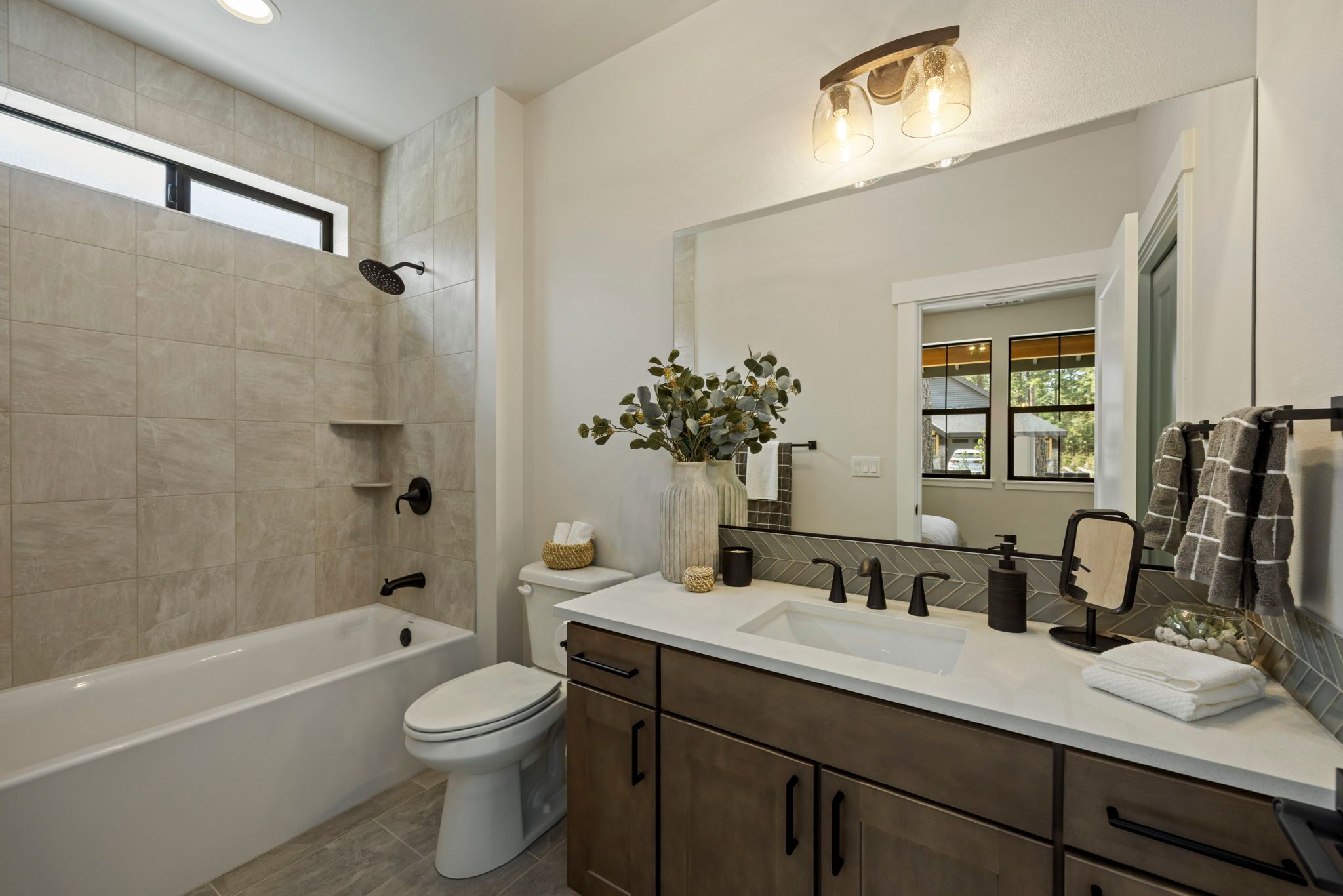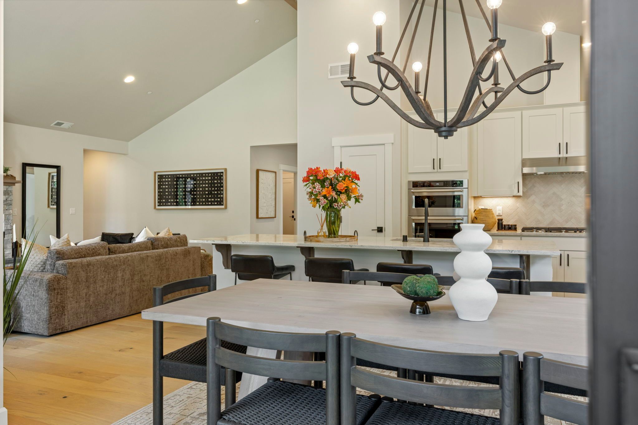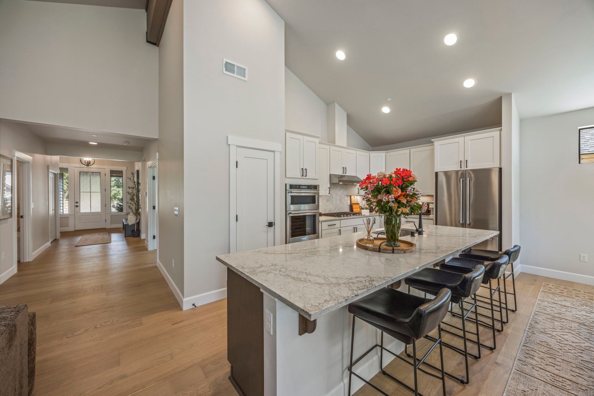 Our cozy single level Maxwelton floor plan has 2,267 sq ft that includes the Primary ensuite, 2nd bedroom w/optional study, guest bath, and additional ensuite bedroom. The open concept kitchen, dining room, & living room are vaulted, leading out to a large, covered patio with a gas firepit. This home is perfect for entertaining or just relaxing.