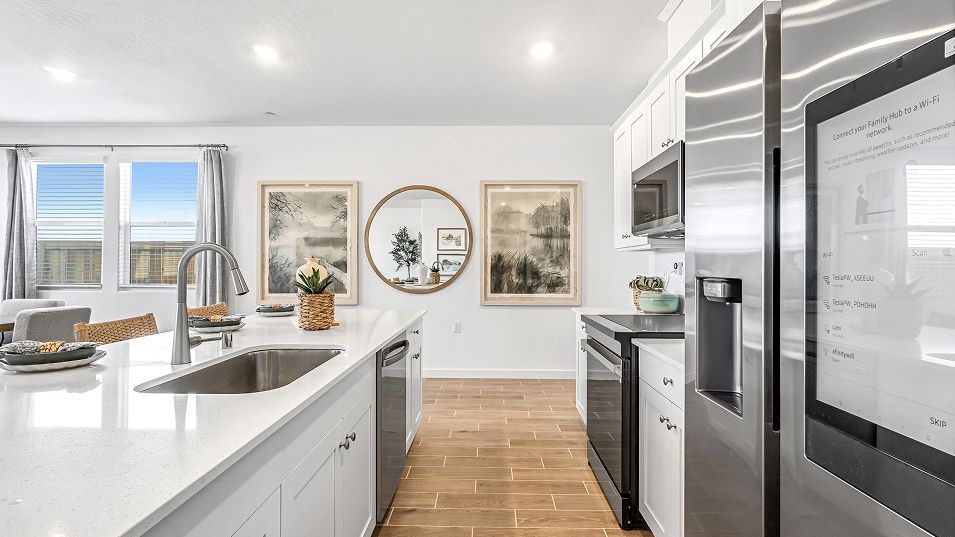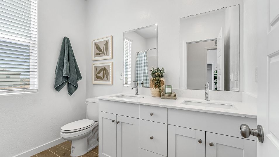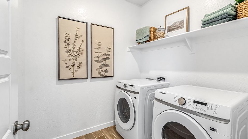 This two-story home showcases a modern layout, ideal for growing or busy families. On the first level is a seamless flow between the Great Room, dining area and kitchen with a large center island and walk-in pantry. A powder room also provides convenience for both family members and guests. Upstairs are all four bedrooms and a laundry room to help keep the home organized. The owner’s suite comes complete with an en-suite bathroom and roomy walk-in closet.