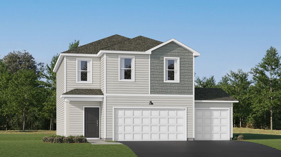 This new two-story home is host to a spacious and flexible open-concept layout on the first floor, blending the kitchen, living and dining areas to maximize interior space. On the second level, two bedrooms and a luxurious owner’s suite surround a versatile and inviting loft. A two-car garage completes the home.