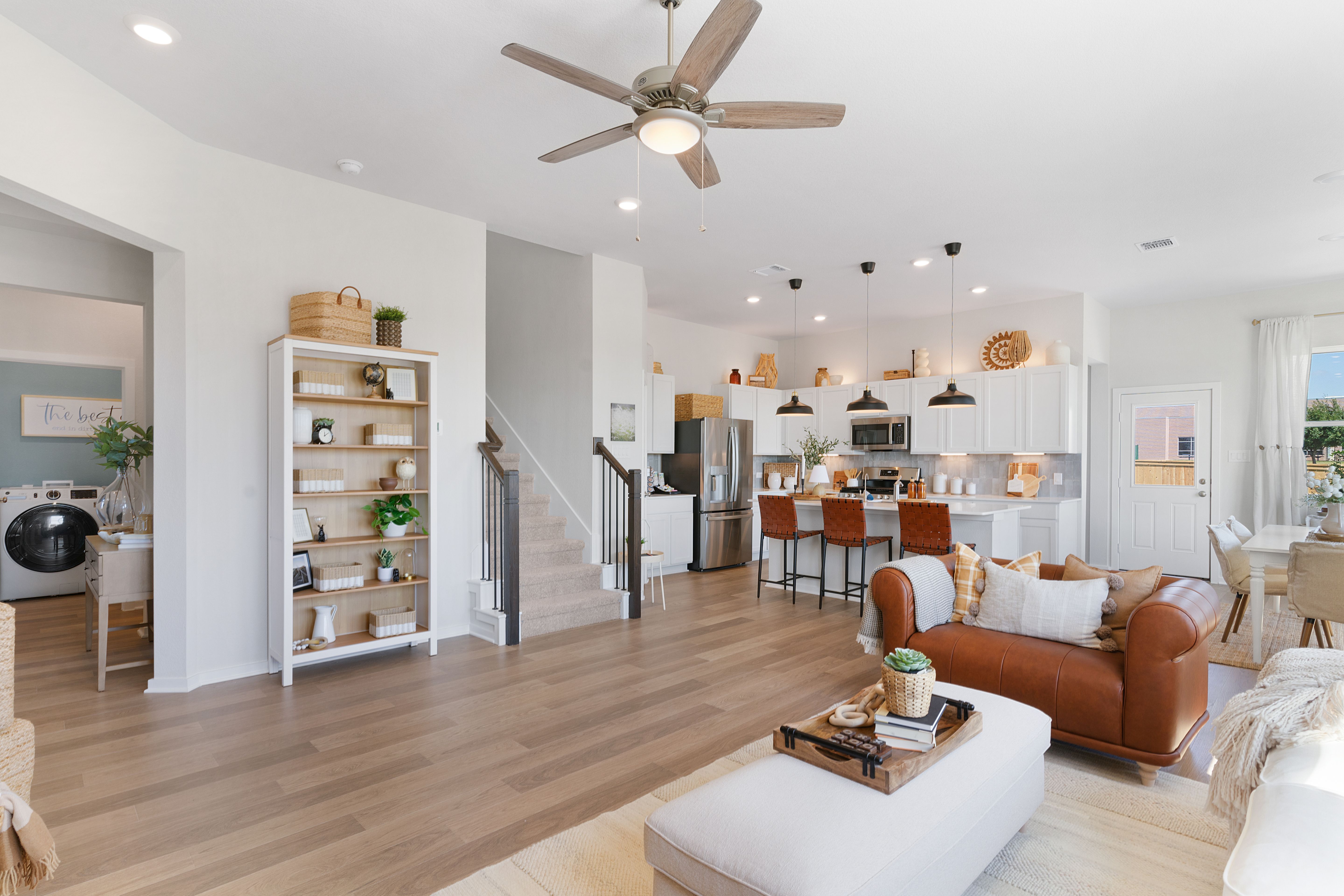 Welcome to this thoughtfully designed two-story home offering 2,211 square feet of open-concept living! With 4 bedrooms and 3 full baths, this home effortlessly blends comfort and functionality. The main floor features a seamless flow between the family room, kitchen, and breakfast area—perfect for everyday living and entertaining. The spacious primary suite is tucked away on the first floor and boasts a spa-inspired bathroom that conveniently connects to the utility room, making laundry day a breeze. Upstairs, a large game room awaits, along with two secondary bedrooms and a full bath—ideal for kids, guests, or a private retreat. Step outside to enjoy the covered outdoor living area, a great space for relaxing or weekend barbecues. Smart design, generous space, and stylish finishes make t...